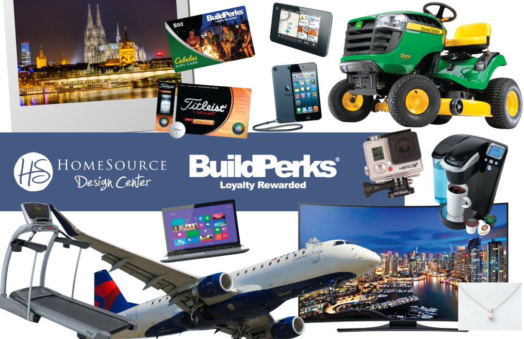 Attention builders, contractors, and remodelers: we just made your material purchases a lot more rewarding. HomeSource Design Center has become a BuildPerks partner, which means every purchase you make with us now earns you rewards.
